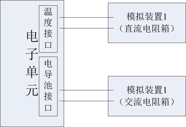 用兩個準確度優于被測儀器電子單元固有誤差三分之一的電阻箱分別代替電導池和溫度的模擬試樣的電導值,檢測電子單元。